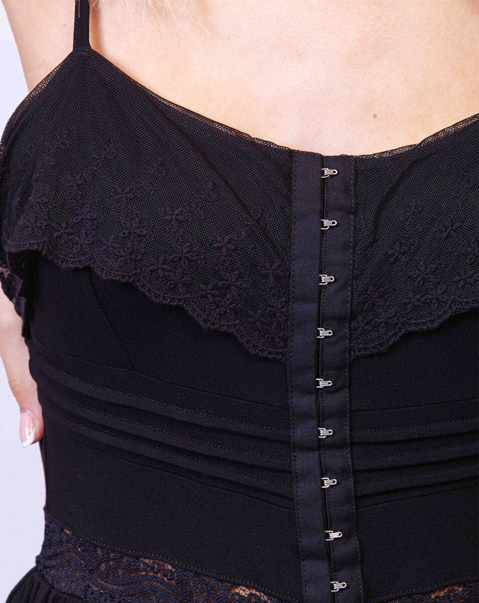 Ολόσωμη φόρμα, σορτς -τιράντες με αυξομείωση – κούμπωμα κόπιτσες – τελειώματα με δαντέλα – τιράντα – πλύσιμο στους 30