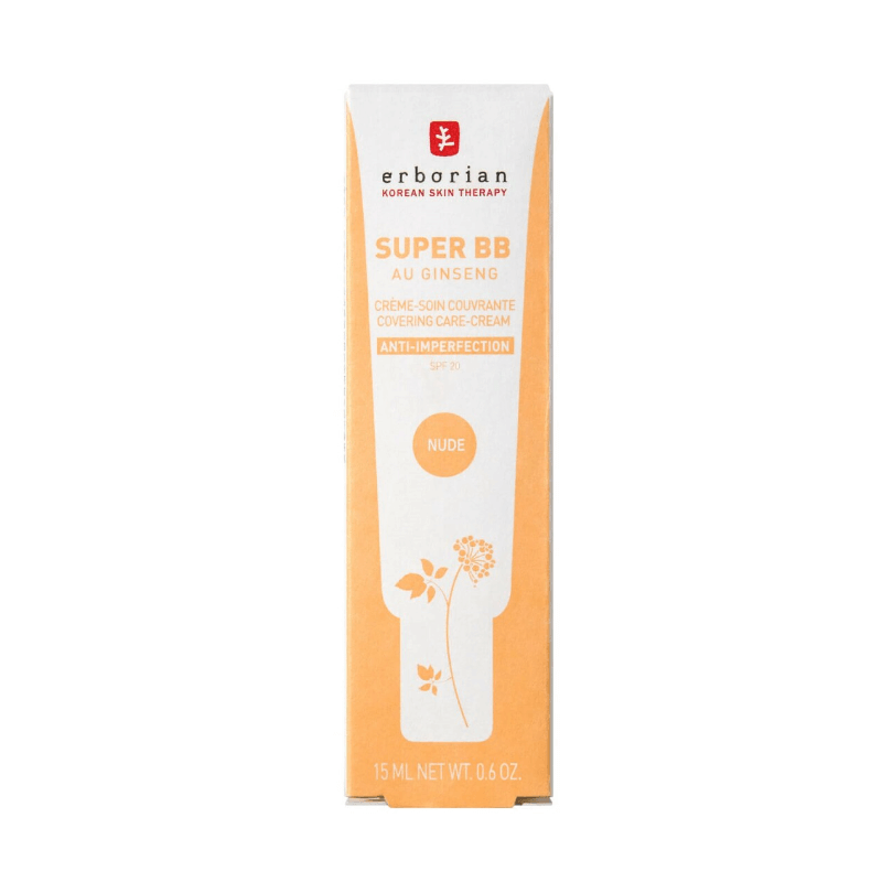 Ιδανική για όσους αναζητούν BB cream με υψηλή κάλυψη για ατέλειες, η Erborian Super BB Nude συνδυάζει φροντίδα και μακιγιάζ για επιδερμίδα με ομοιόμορφο τόνο και υγιή όψη.