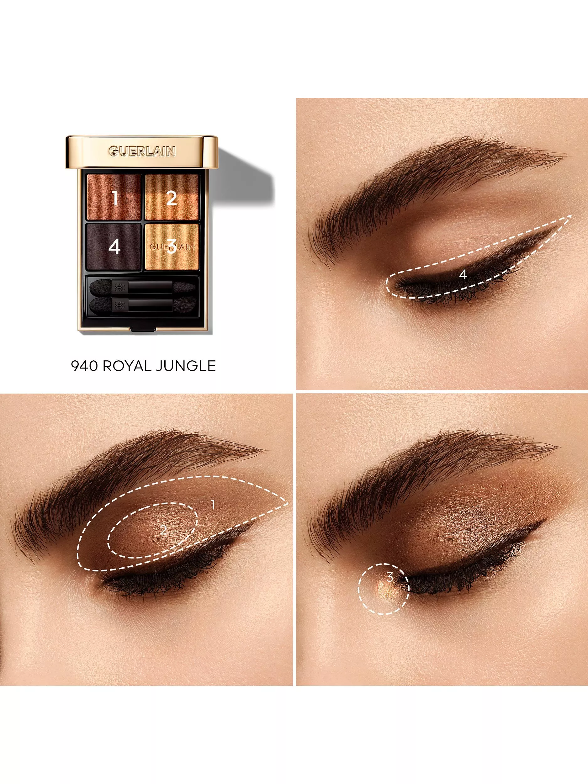 Η Guerlain Ombres G Eyeshadow Quad #940 Royal Jungle είναι η επιτομή του πολυτελούς μακιγιάζ ματιών, προσφέροντας υψηλή απόδοση χρώματος και μακιγιάζ μακράς διάρκειας για να δημιουργήσετε ένα εκθαμβωτικό φυσικό αποτέλεσμα στο μακιγιάζ ή ένα εντυπωσιακό βραδινό look.