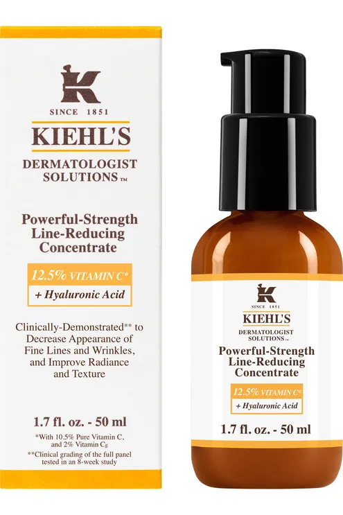 αναδεικνύουν μια λαμπερή και αναζωογονημένη επιδερμίδα με το ισχυρό συμπύκνωμα μείωσης της γραμμής δύναμης της Kiehl. Με 12,5% βιταμίνη C και υαλουρονικό οξύ, ο ορός λειτουργεί για να φωτίζει και να ενυδατώνει το δέρμα, ενώ η γλυκερίνη προσφέρει κατακράτηση υγρασίας. Η αντιγηραντική φόρμουλα ενσωματώνει επίσης 10,5% L-ασκορβικό οξύ και 2% ασκορβυλγλυκοσίδη.